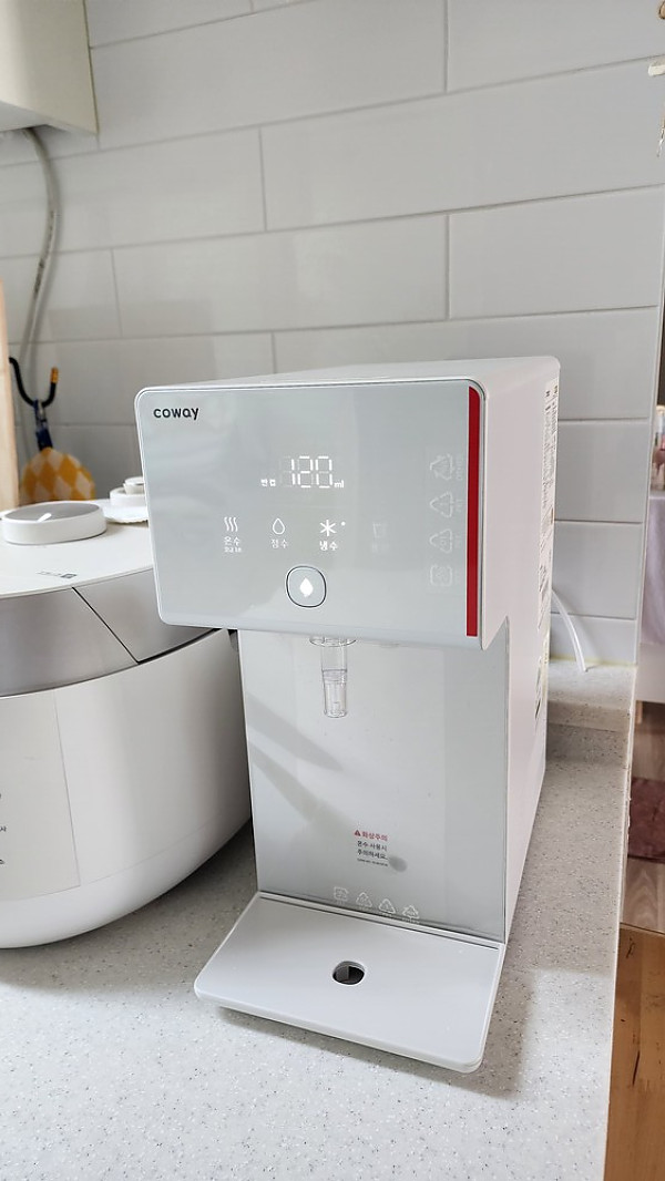 베스트다에서 정수기 상담받던중,코웨이에 미니 얼음정수기가 있다고해서 설치까지 하게되었습니다.우선 사진에서 보이는것처럼.다른 얼음정수기와 비교했을때 크기부터 차이가 많이나서 오히려 설치할때 부담이 적었습니다.공간차지를 많이 하지않는다는 선에서 더욱 마음이 끌렸고,취침시간을 정해서 해당 시간대 동안에는 제빙을 하지않아 수면시간도 확보할수있다는 장점또한 꽤나 괜찮은 메리트인거같습니다.또한 정수기의 본분인 냉온수또한 잘 나와서 더욱 마음에 드는 제품입니다.
