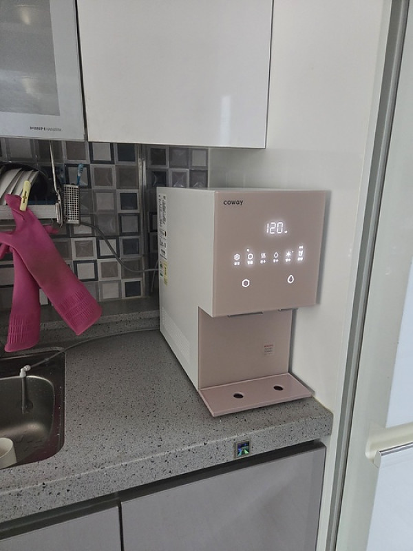 주방에 자리가 협소해서 큰 정수기를 놓지는 못하는 상황이였는데, 이번에 설치한 정수기가 크기도 작고 물도 잘 나와서 사용하기 너무 편리하네요!