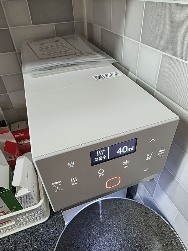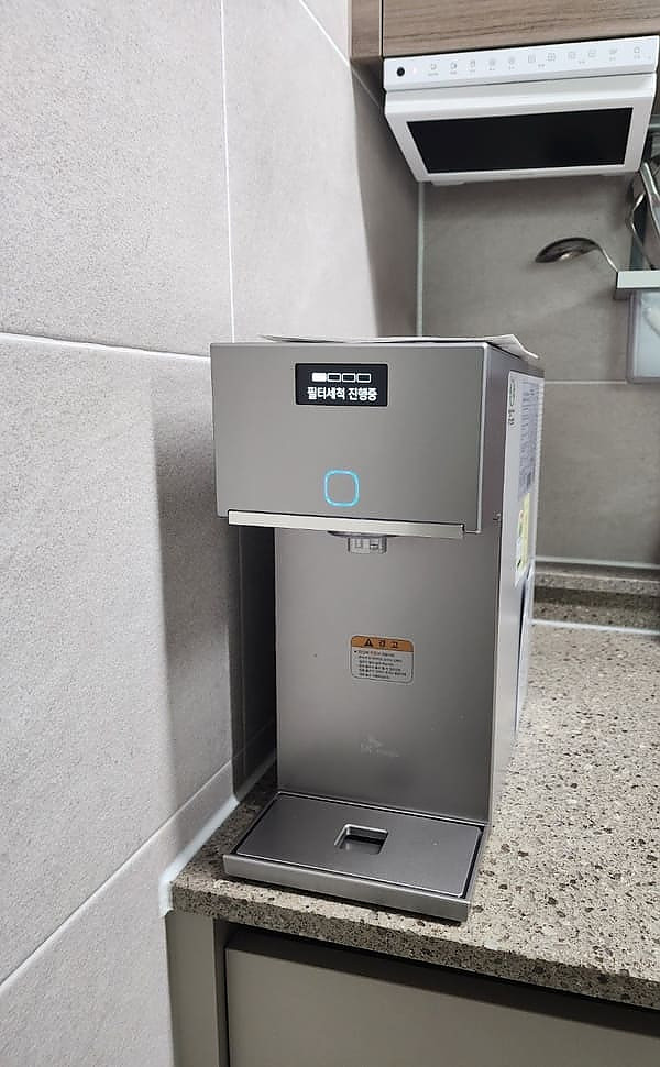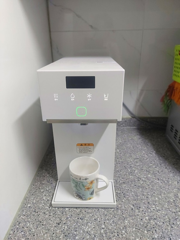 사진에서 보이는것처럼 크기가 진짜 작은 정수기에요! 사이즈는 작은데 디스플레이가 작은 느낌은 전혀 들지않아서 사용하는데 불편함도 없고 오히려 공간 차지가 덜해서 주방을 좀 더 자유롭게 쓸수있어서 좋아요!